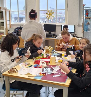 Activités manuelles de création de cartes de Noël au cdi jusqu'aux vacances.