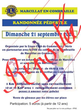 En raison de la météo désastreuse prévue ce dimanche, la randonnée est reportée. Les élèves de 3e conservent leurs recettes pour la prochaine fois.