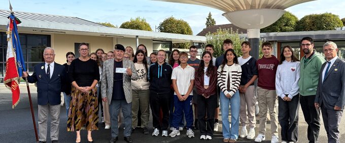 Vendredi 12/09, nous avons eu le plaisir de recevoir les représentants du comité du Souvenir Français de Montluçon. Ils ont apporté un chèque en soutien du voyage en Normandie de l'an dernier. Les élèves de 3e n'ont pas manqué de les en remercier.